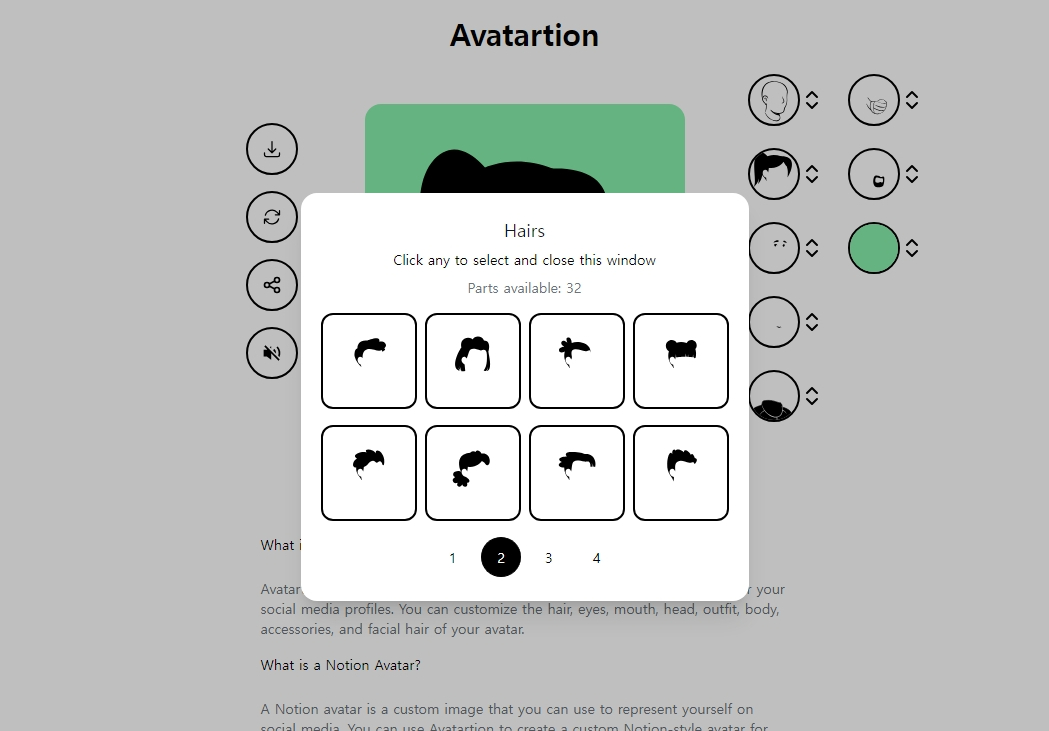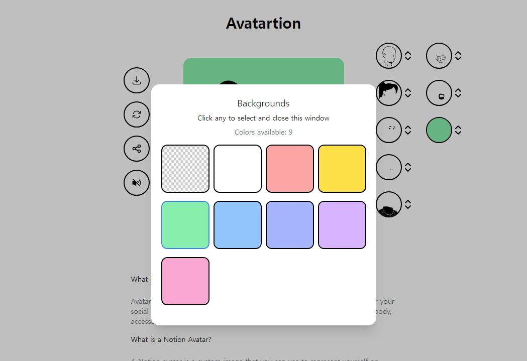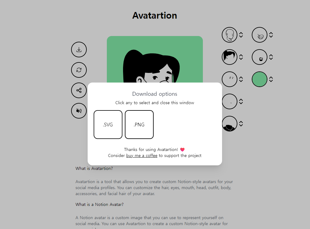 - μ¬μ΄νΈ μ μ: avatartion.com λλ notion-avatar.app/ko