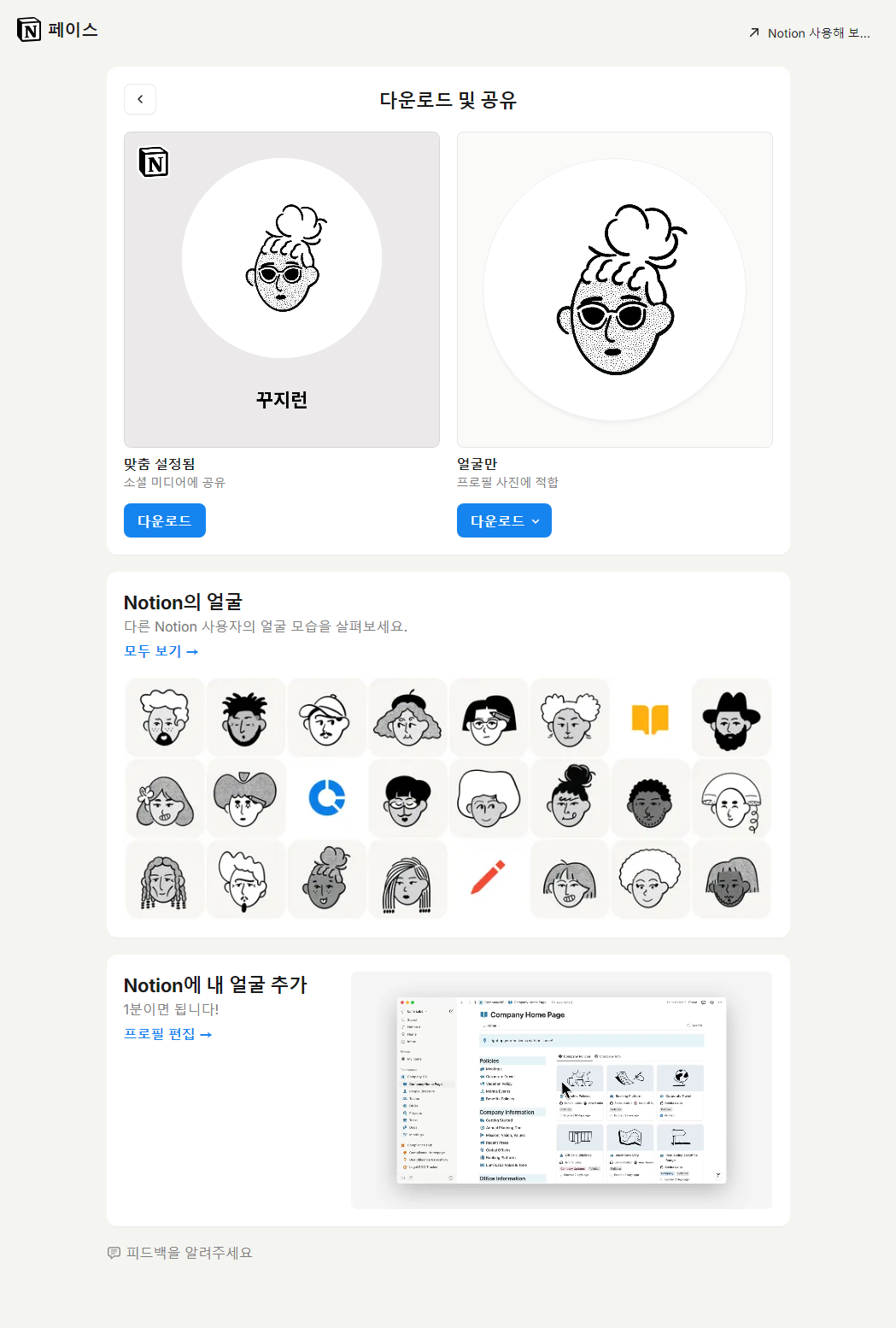 1. λ Έμ νμ΄μ€ (Notion Faces) - 곡μ μλ°ν λ©μ΄μ»€